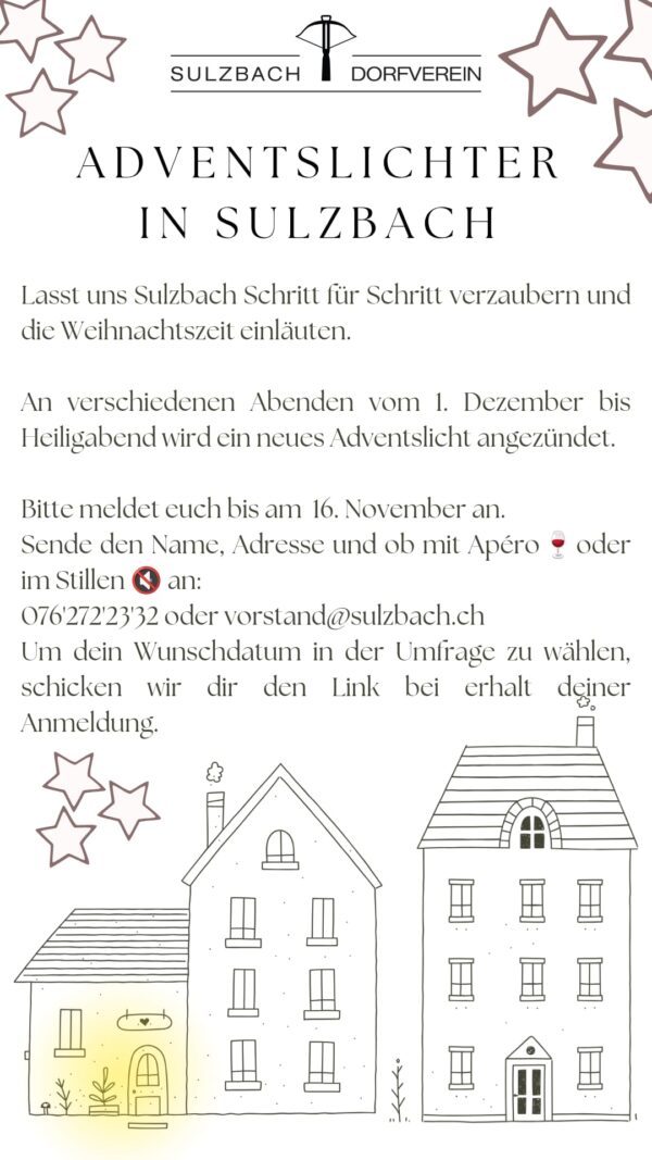 Liebe Sulzbacherinnen und Sulzbacher, der Dorfverein Sulzbach lädt wieder herzlich zum traditionellen Dorffest ein! Kommt vorbei und feiert mit uns den Sommer und das Leben «i oisem schöne Dorf». Um 17:00 Uhr findet zudem eine Andacht im Schulzimmer statt. Weitere… Weiterlesen →