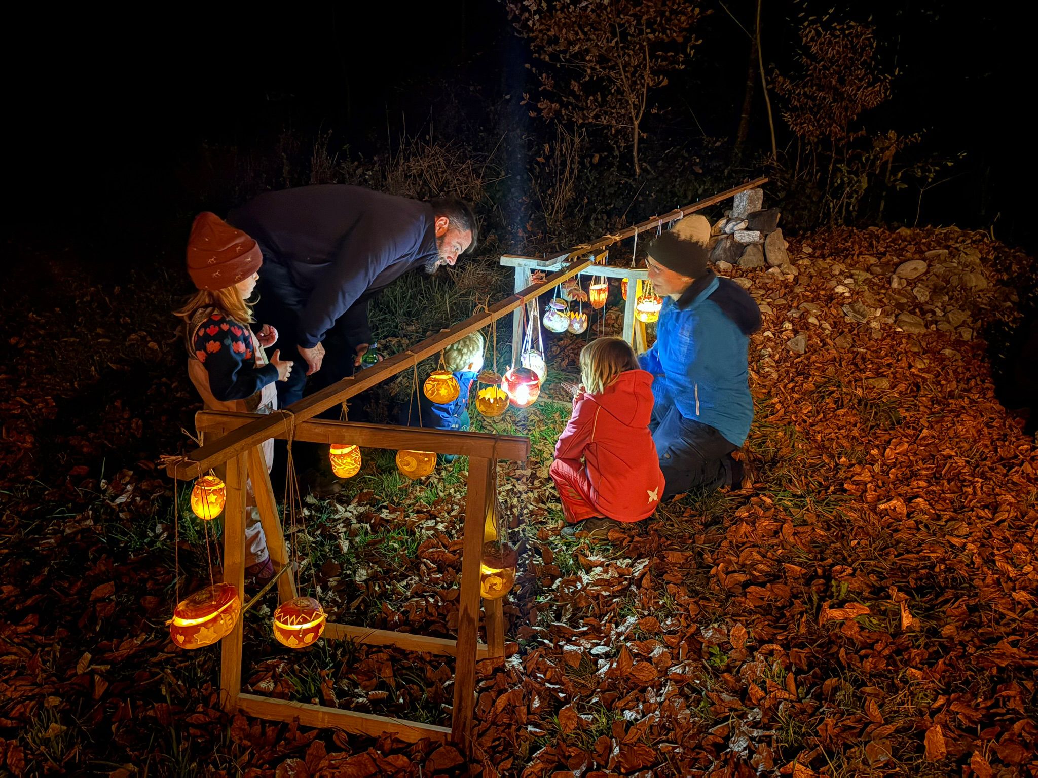 Wir machen eine kleine Runde mit den liebevoll geschnitzten Räbeliechtli zum Wald